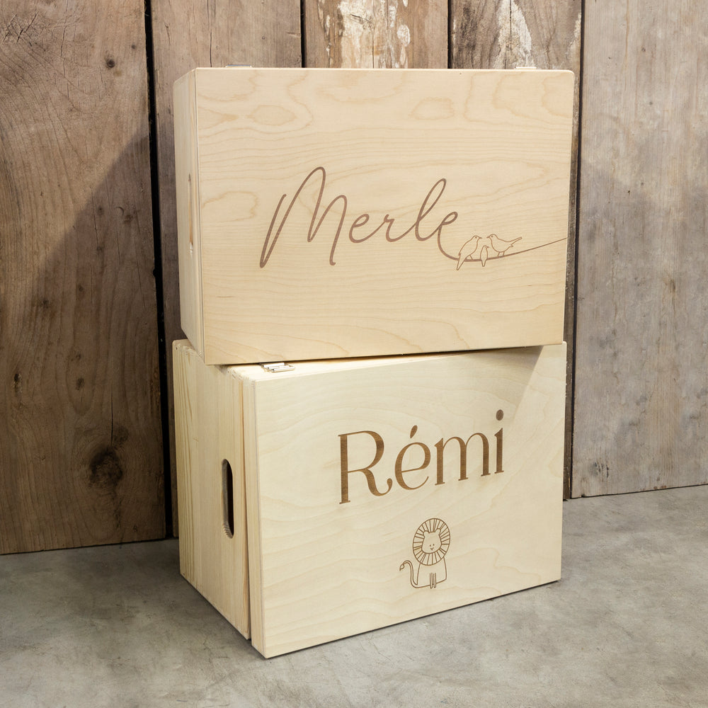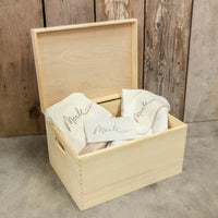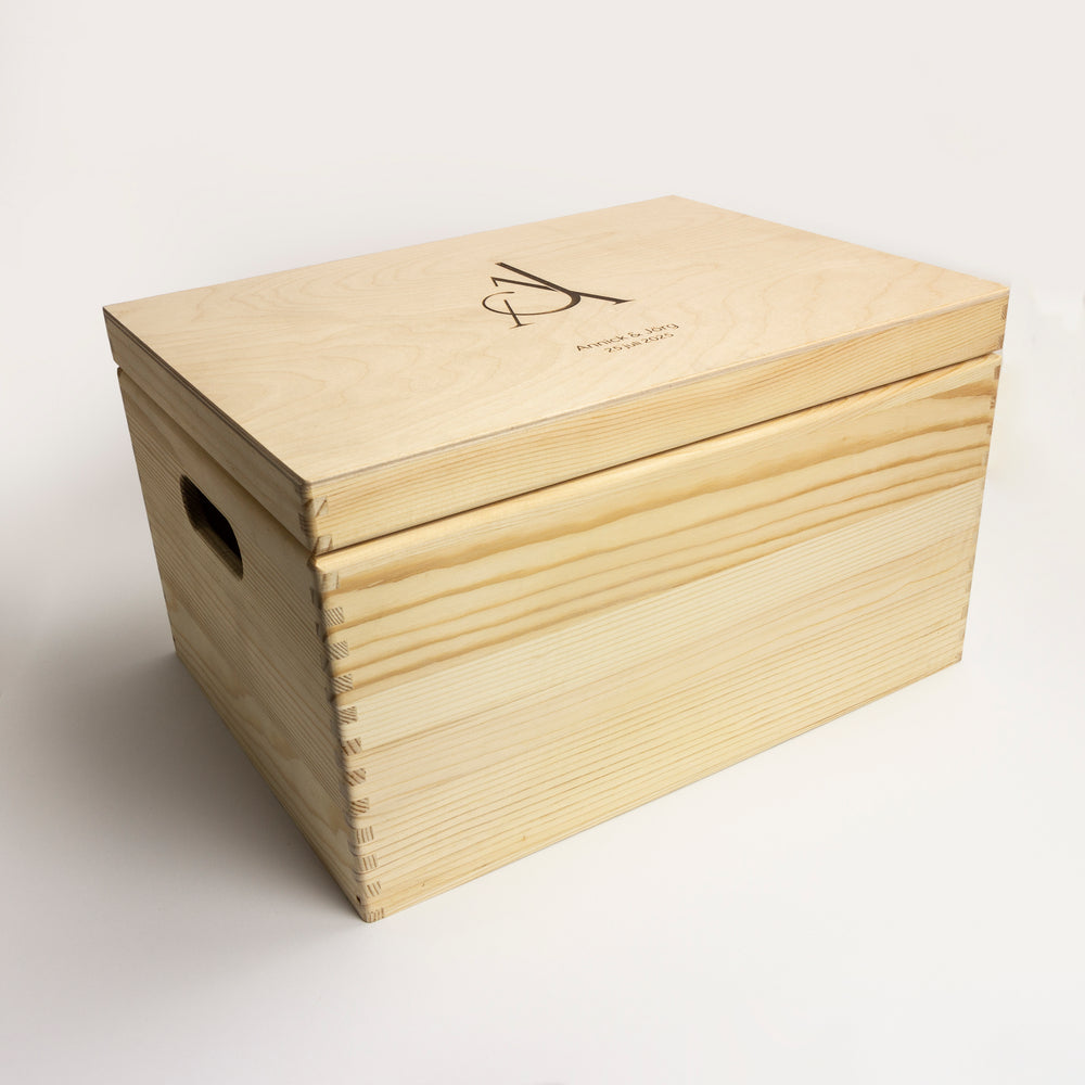 Prachtige houten gepersonaliseerde memorybox met klapdeksel. Ideaal voor het bewaren van jullie mooiste herinneringen van jullie trouw, kindje, ...