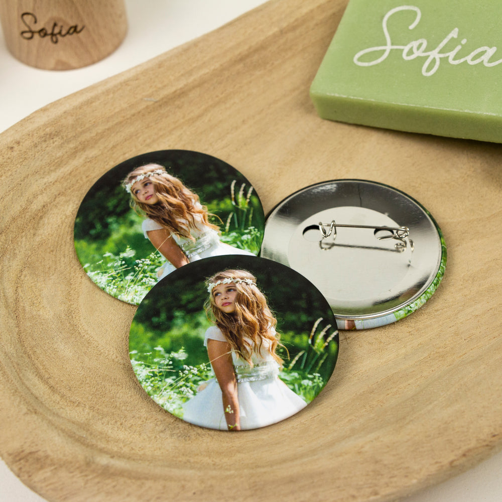 Een leuke foto van je kindjes of gezin, de naam van je pasgeboren baby, een foto van je communie, een quote, ... Een speld is altijd een tof idee voor elke gelegenheid!