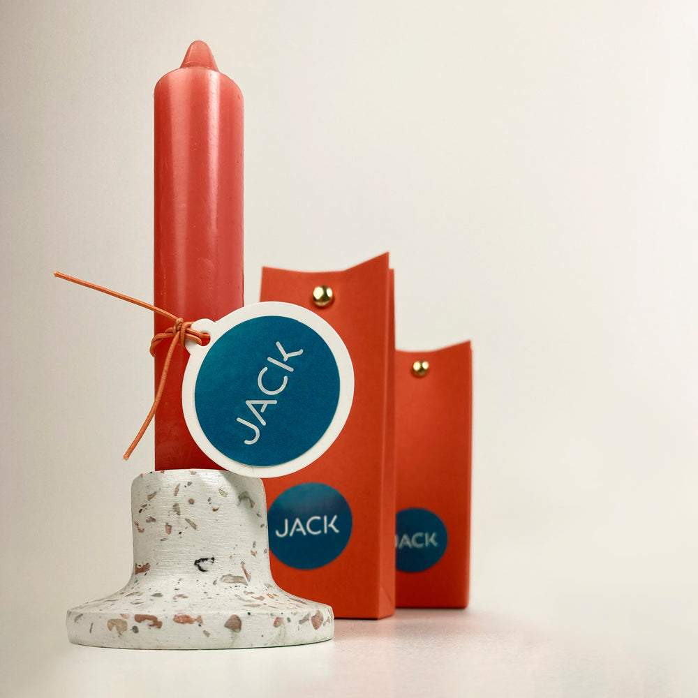 Bij deze collectiekaart wordt de naam uitgesneden uit een gekleurd papier naar keuze en wordt dit vervolgens verlijmd met een wit papier.