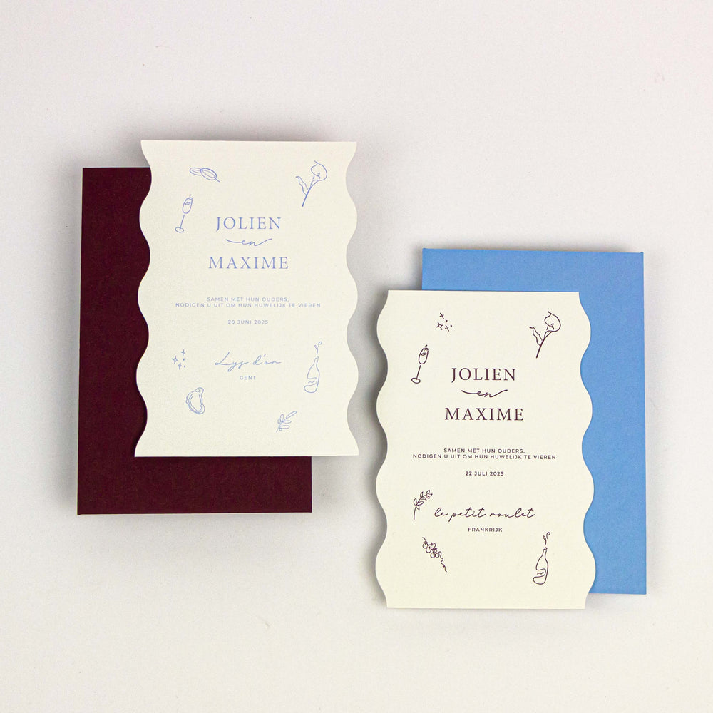 Wensen jullie een trouwkaart volledig gepersonaliseerd? Wij ontwerpen samen met jullie de kaart van A tot Z, van ontwerp tot druktechniek en afwerkingen.