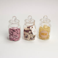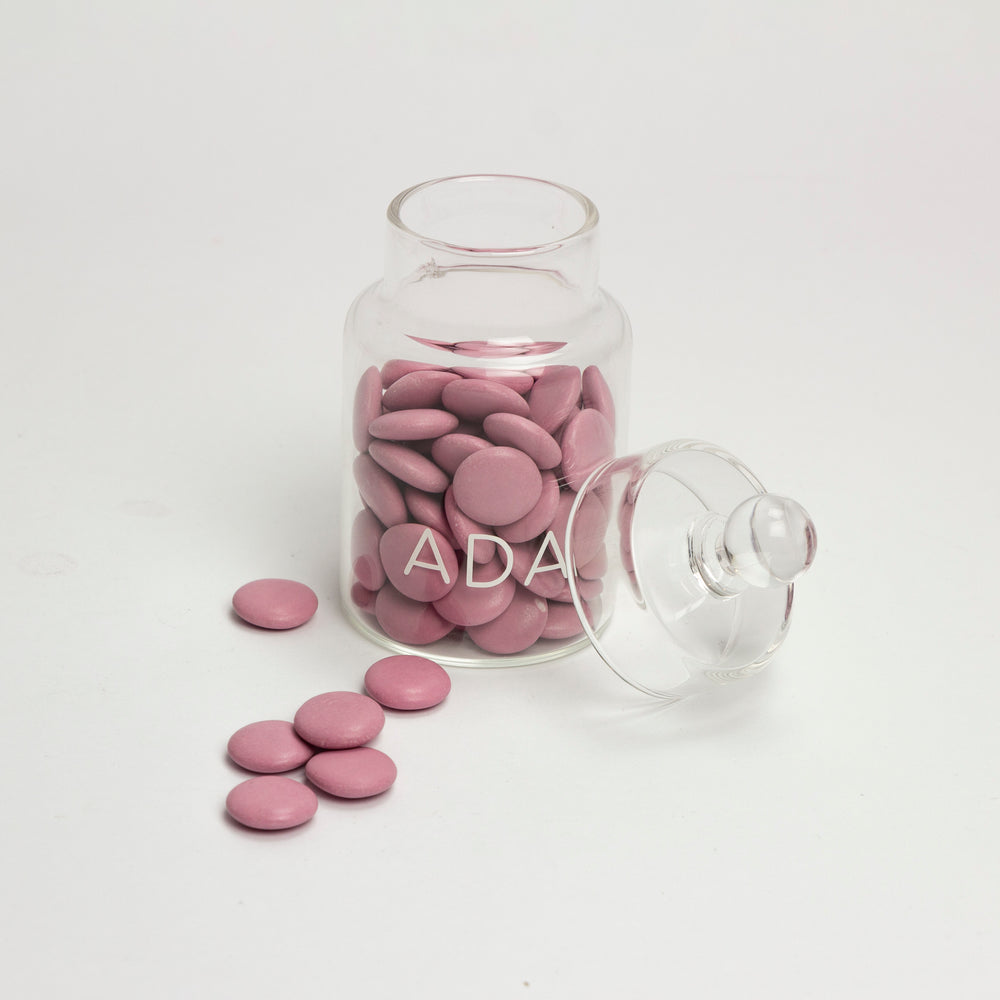 Ons glazen apothekerspotje met deksel is ideaal als mini snoeppotje of voor bijvoorbeeld badzout of soap flakes. Je kan dit m.a.w. met allerlei zaken vullen en op allerhande manieren personaliseren. Ideaal geschenk voor doop, huwelijk, communie, lentefeest, ...
