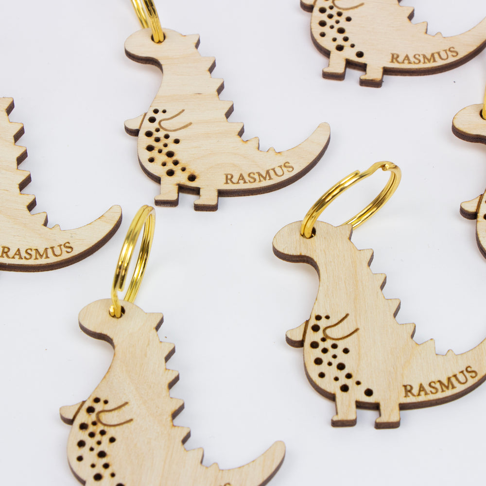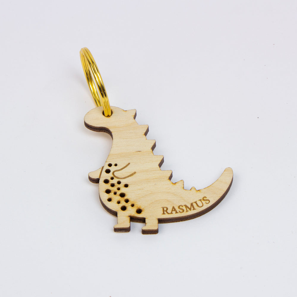 Houten sleutelhanger met uitsnede in vrije vorm.