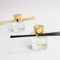 Glazen geurflesje met goud dop (incl. 5 geurstokjes).