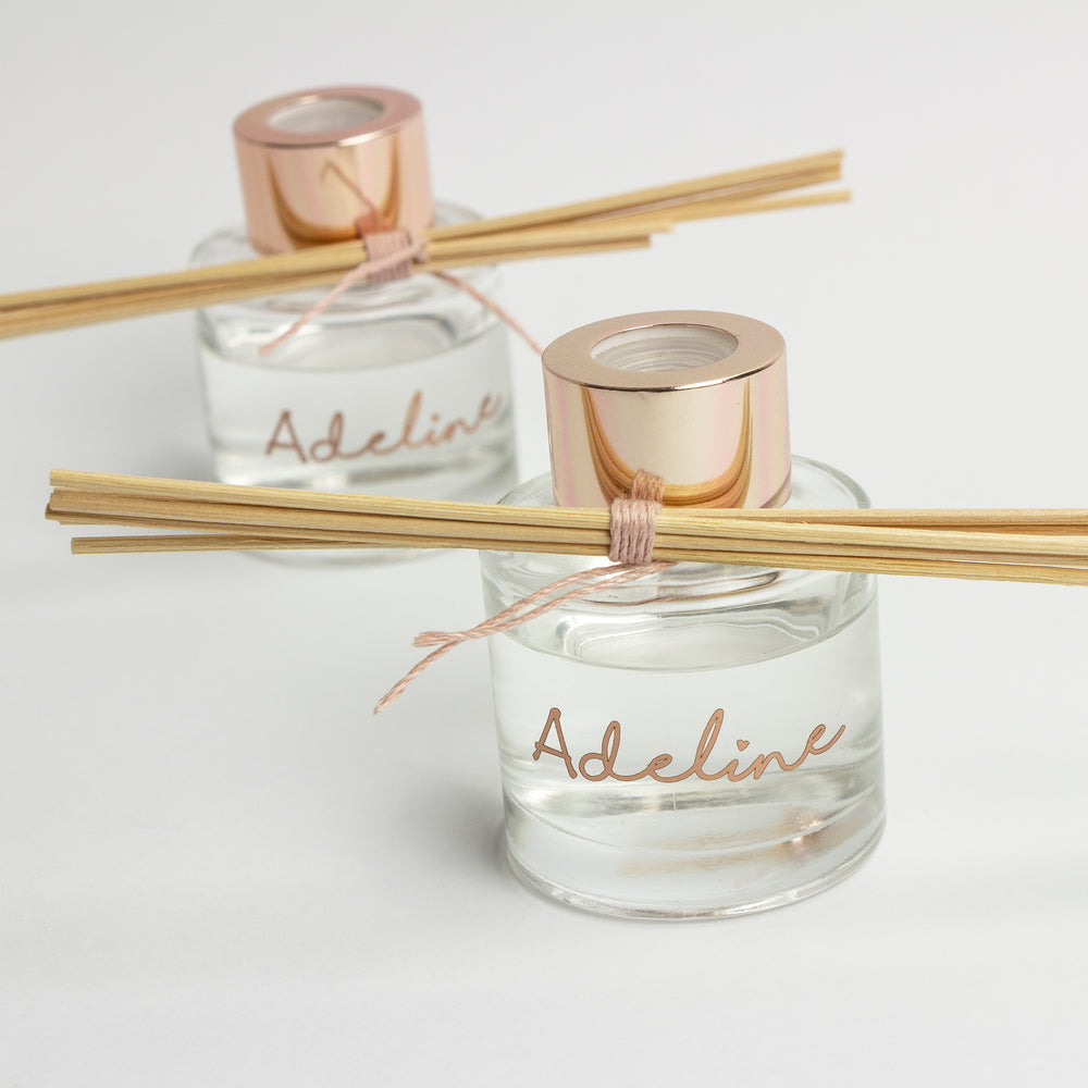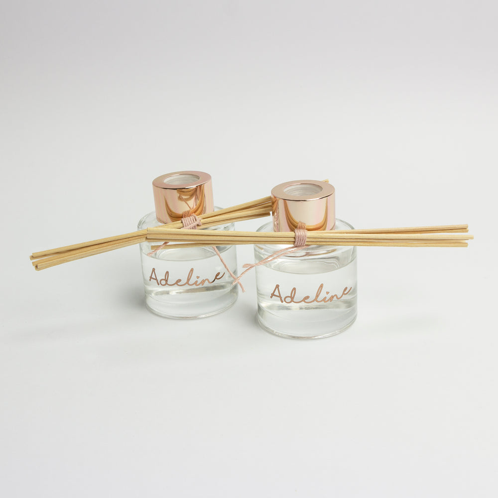 Glazen geurflesje met rosé dop (incl. 5 geurstokjes).