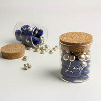 Glazen stolppotje die je kan vullen met bijvoorbeeld een bruisbal, snoepjes, flowerbombs, suikerbonen, ...