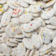 De suikerbonen worden geproduceerd in een grotendeels handmatig proces, waardoor elke batch lichtjes kan verschillen van kleur. Wanneer je een nabestelling plaatst, moet je dus rekening houden dat dit kan voorkomen. Kleuren kunnen afwijken van de foto.