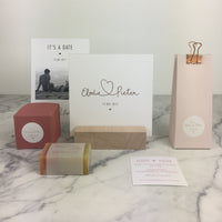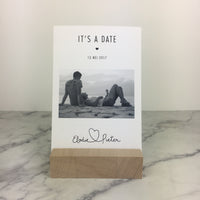 Save the date kaarten werden met een leuke foto van het koppel aangekondigd.