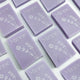De zeepjes worden allemaal op maat gemaakt en kunnen bij elke batch ietsje anders zijn van kleur en kleine imperfecties hebben. We zorgen uiteraard steeds voor een optimale leesbaarheid van de gravure.